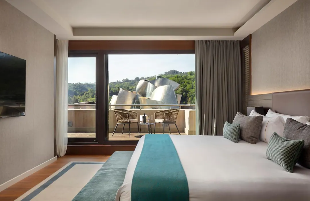 Adjacent to the Guggenheim Museum, the Gran Hotel Domine Bilbao offers unparalleled views and upscale accommodations. With its striking contemporary design, this hotel reflects the innovative spirit of Bilbao while offering lavish amenities. Each room is thoughtfully designed with modern furnishings and floor-to-ceiling windows, ensuring guests enjoy stunning views of the city. The hotel's Michelin-starred restaurant, Bistró Guggenheim Bilbao, serves a tantalizing array of dishes, focusing on local ingredients and flavors. Guests can also unwind in the rooftop terrace bar with panoramic views of the Bilbao skyline. This hotel epitomizes luxury accommodation in Bilbao seamlessly connecting you to the cultural heart of the city.