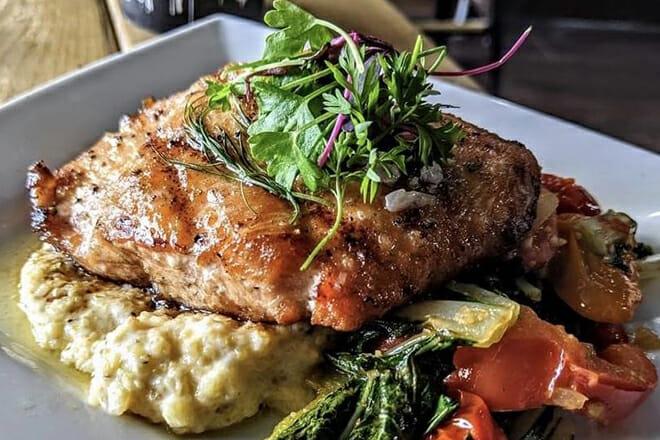 Il menu è di ispirazione globale e di provenienza locale, con insalate fresche, maiale brasato a fuoco lento, pesce pescato localmente e altro ancora.
