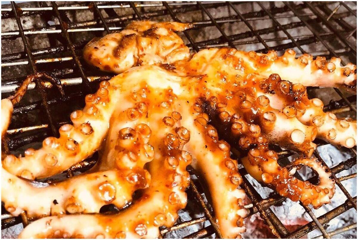 Li ho osservati mentre grigliavano e il polpo viene cotto alla brace per qualche minuto su ogni lato per mantenerlo bello e tenero. È affumicato, un po' dolce e sorprendentemente piccante.