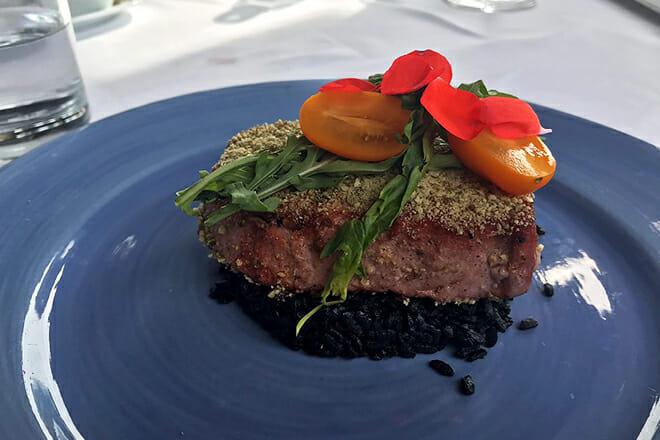 Il menu cambia frequentemente: le proposte più popolari vanno dal risotto ai frutti di mare neri o dal pesce al mole verde alla torta di lava al cioccolato.
