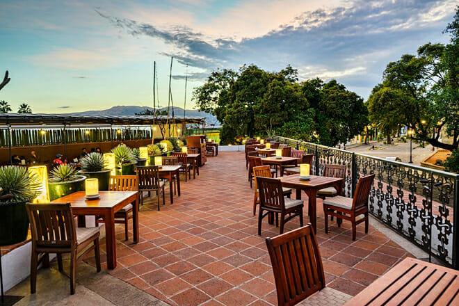 A colazione provate i dolci fatti in casa o l'omelette di huitlacoche con condimento al tartufo. La cena combina cucina messicana e internazionale, come l'anatra in salsa mole all'arancia o il pescato del giorno marinato alla pastora.