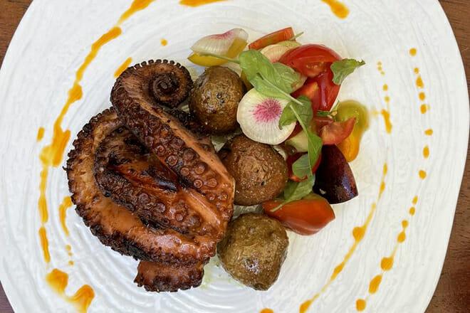 Gli ingredienti sono freschi e locali; i sapori e le tecniche sono internazionali e troverete ingredienti locali dal mare alla tavola cucinati alla griglia o nel forno a legna.