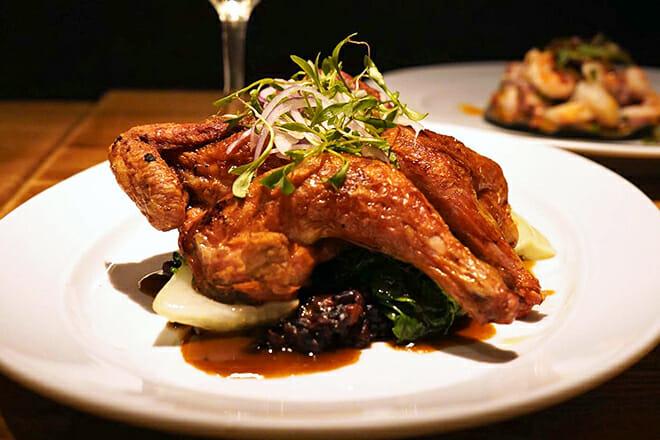 Le specialità locali includono tacos di anatra croccante con mole rosso e coniglio profumato all'origano.
