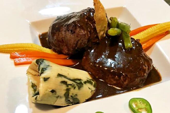 Il menu è una delizia messicana contemporanea, dalle melanzane in crosta di amaranto ai medaglioni di manzo con riduzione di vino rosso o ai gamberi in crosta di cocco con salsa di mango.
