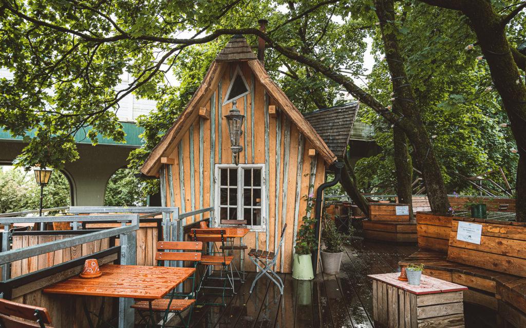 Alcuni la chiamano casa delle streghe, altri casa sull'albero. Non importa, perché questo luogo risveglia ogni sogno infantile di avere una propria casa sull'albero (che io non ho mai avuto, ma la mia migliore amica sì). A Giesing, al Gans Woanders, potete sedervi nella casa della strega tra gli alberi in un'atmosfera molto accogliente.